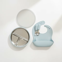 Stainless Steel 304 Children Tableware BPA Free Silicone Baby Kids Plate Baby Bibs Waterproof Heat-Resistant Dinner Set Baby